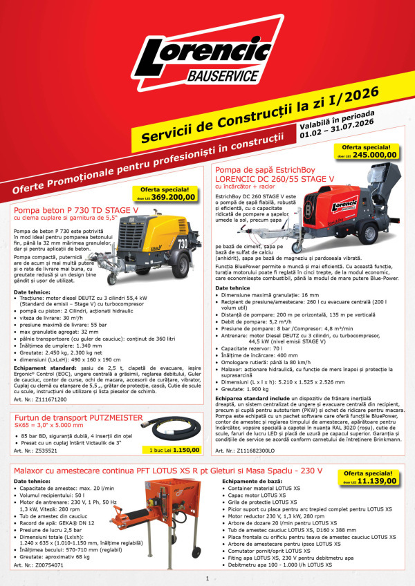 Servicii de Construcții la zi I/2026