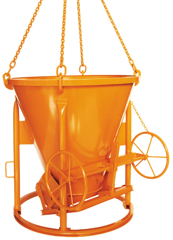 Betonsilo mit konischer Form und geradem Auslauf. Schwere, stabile Ausführung mit Handhebelbetätigung des Patentverschlusses.