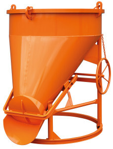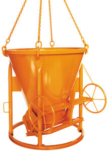 Siloz pentru beton cu formă conică şi gură de scurgere dreaptă. Construcţie grea, stabilă, cu vană-patent cu acţionare manuală. Se